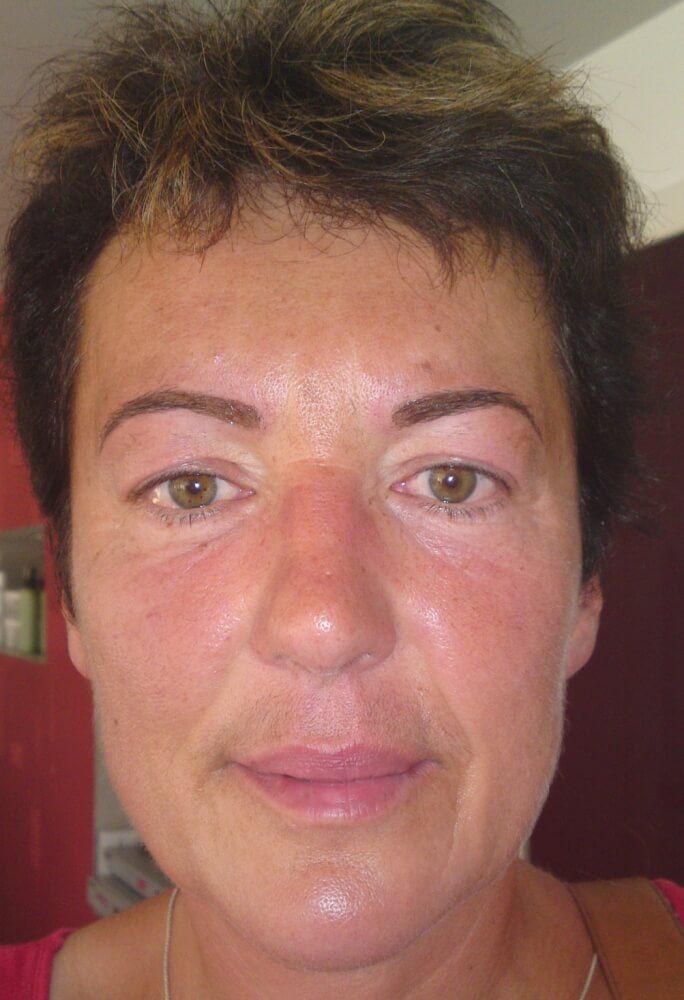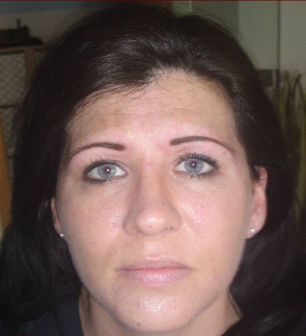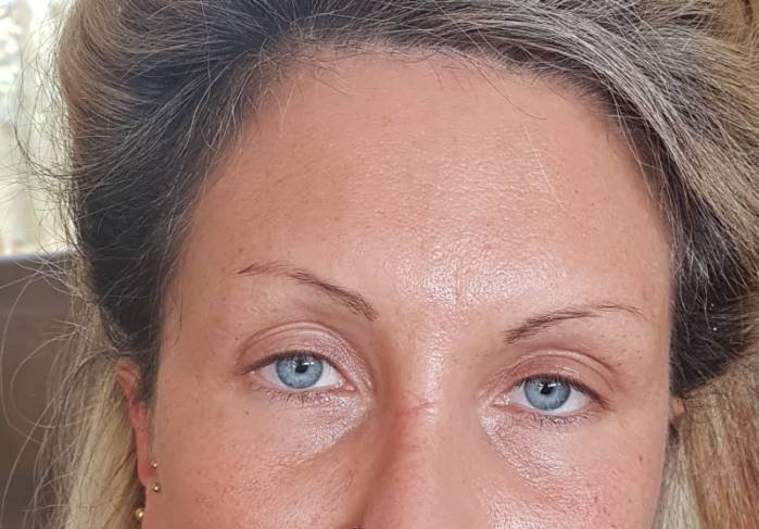 Nach der ersten Behandlung die Augenbraue abgeheilt