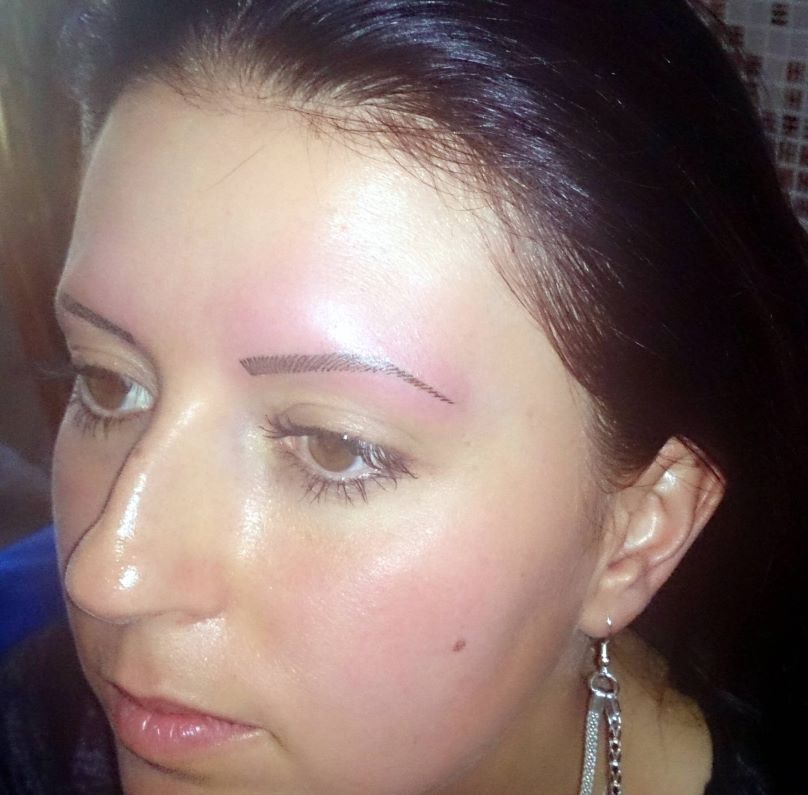Frisch gestochener Augenbrauen, auf Wunsch in intensiver Zeichnung.